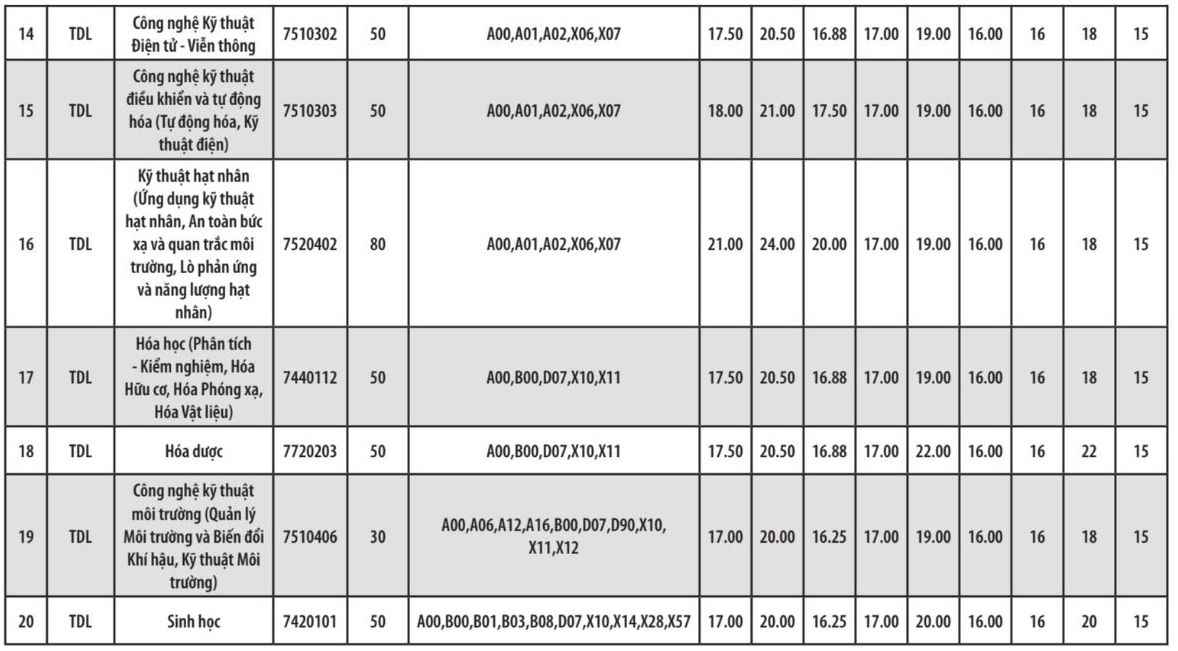 The list of admission subject combinations used by Da Lat University in the 2026 enrollment season is as follows: A00, A01, C00, C01, C02, D01, D14, D15, D78, D96...