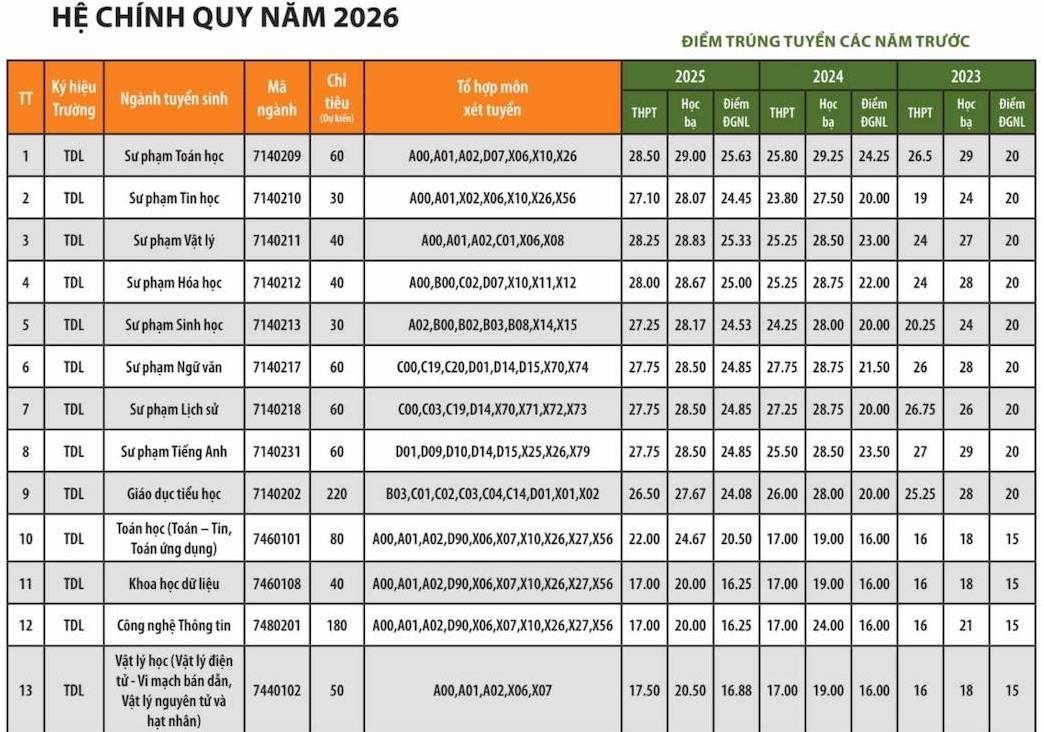 Da Lat University has just announced information on regular university admissions in 2026. Specific admission methods are as follows: