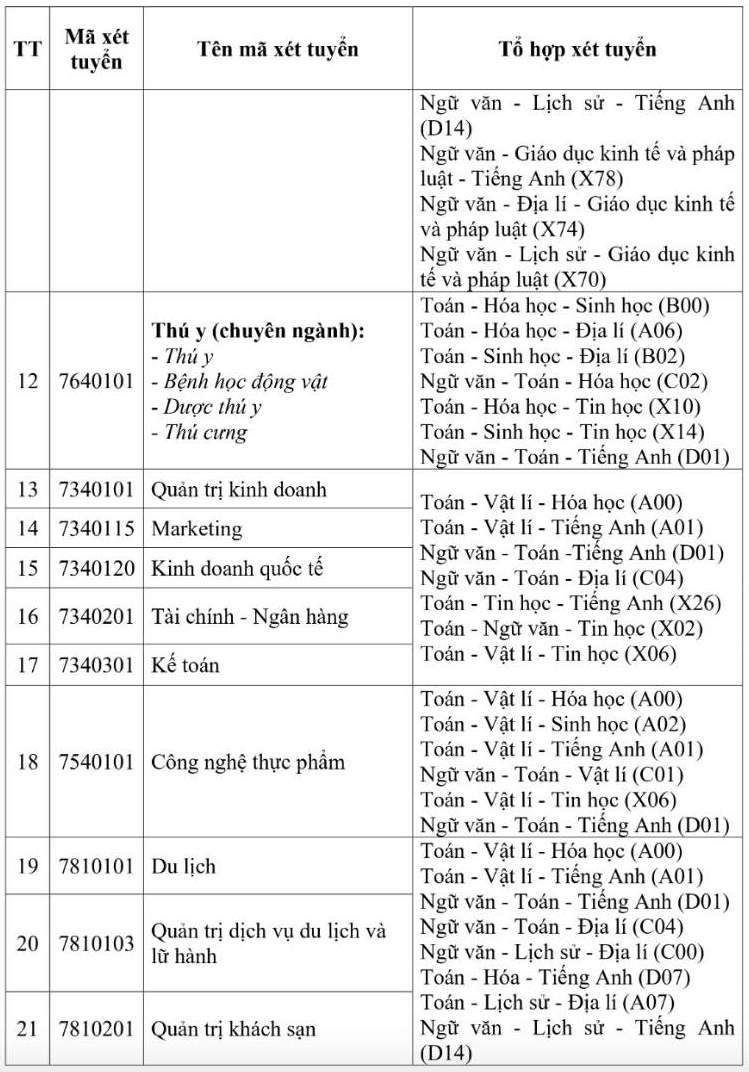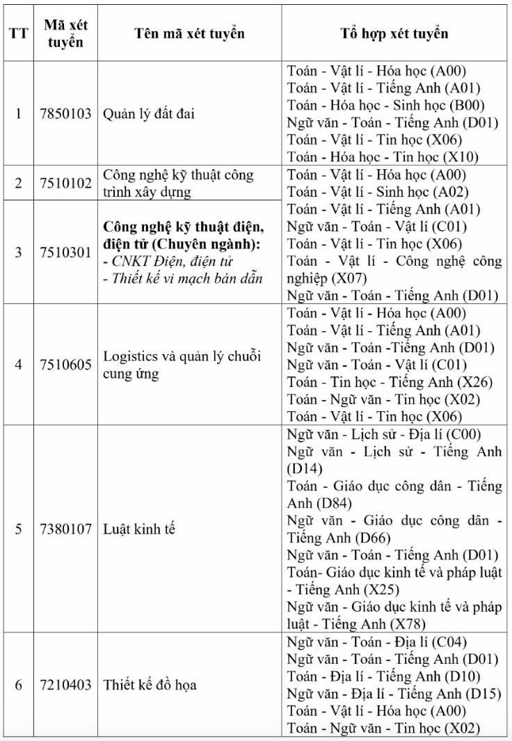 Tay Do University has just announced the expected admission combinations for regular university admission in 2026.
