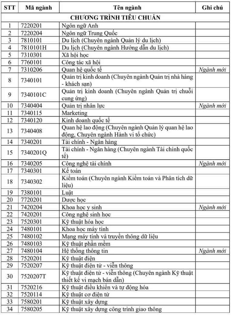 For the standard program, some new training majors include: International Relations, Human Resources Management, Financial Technology, Biomedical Sciences...