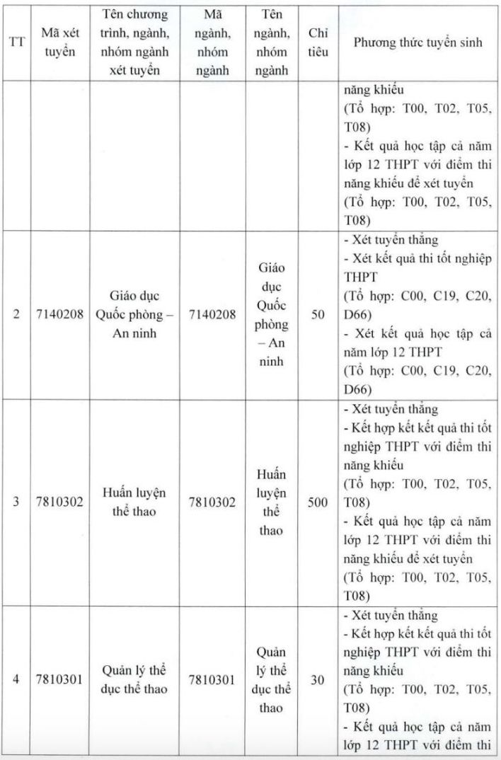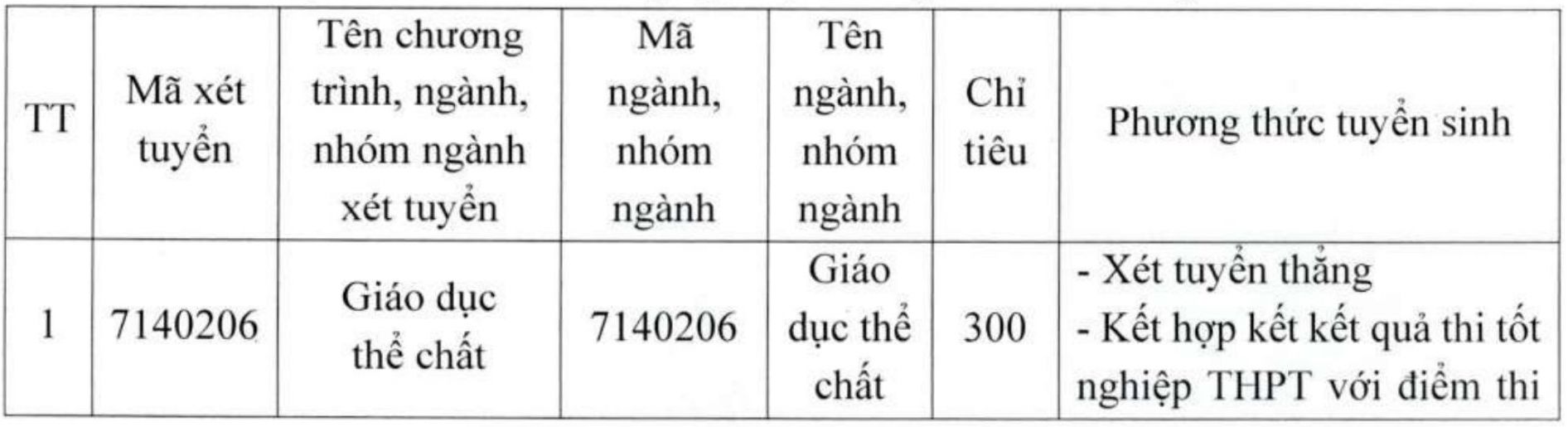 - Enrollment methods such as: Direct admission and priority admission; Considering high school graduation exam results, combining high school graduation exam results with sports aptitude test scores; Considering high school academic results (major yearbook), combining high school academic results with sports aptitude test scores...