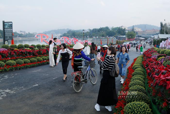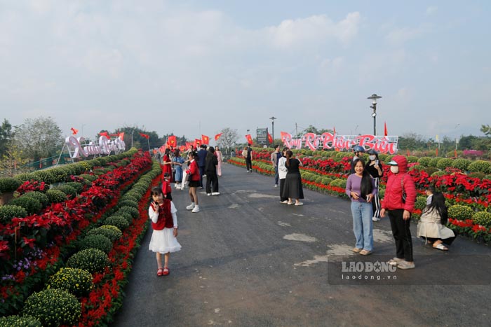 According to the reporter of Lao Dong Newspaper, in the Muong Thanh bridge area (Dien Bien Phu ward, Dien Bien province), the "Xuan Binh Ngo - Radiant Dien Bien" flower street just officially opened and quickly became a tourist attraction for people and tourists.