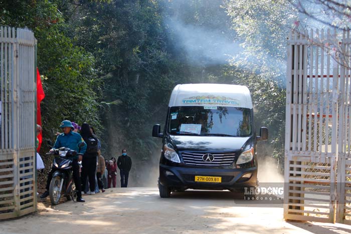 According to Lao Dong Newspaper reporters' records, from the morning of January 10, the road leading to the cherry blossom island area (Muong Phang commune, Dien Bien) was packed with people and vehicles.