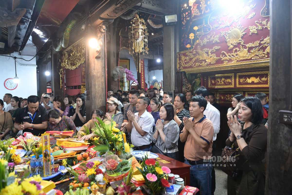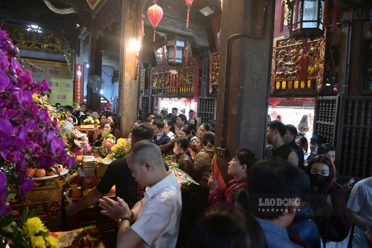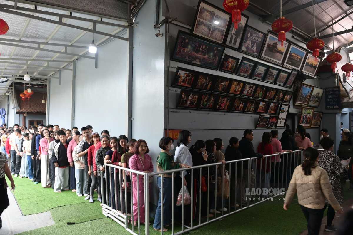 And at Tien Huong Palace, people lined up to wait to worship in the forbidden palace area - the place of worship of Saint Mother Lieu Hanh. Ms. Thu Trang (in Y Yen commune, Ninh Binh province) shared: "I lined up for about 20 minutes before it was my turn to worship inside the forbidden palace. Although crowded, everyone was serious, without jostling.