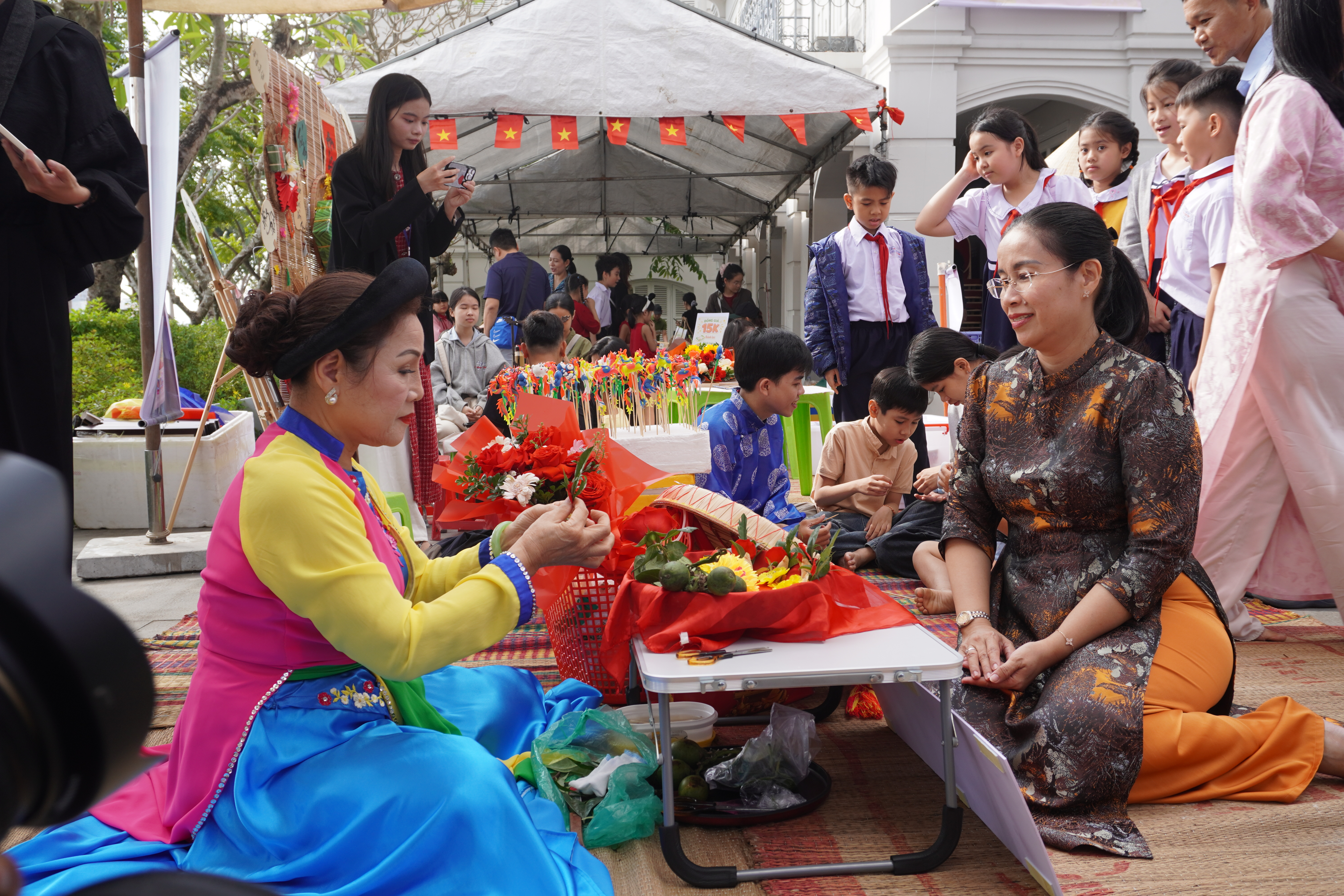 The program recreates the traditional Tet market space through stalls of folk cuisine, handicrafts, Tet gifts, ao dai, ornamental plants and many familiar street foods. Notably, the "Little Market" is organized to create conditions for children to experience communication skills, buying and selling and get acquainted with the old Tet market life.