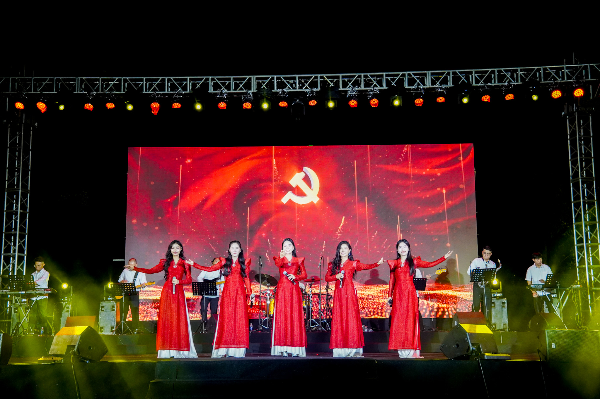 The program is elaborately staged, carrying profound political and cultural significance, expressing gratitude to the glorious Party, and at the same time arousing belief and excitement in the first days of the new year. Through special singing, dancing, and music performances, the program recreates the glorious historical journey of the Party, reflects the country's renovation achievements and spreads the aspiration for development in the integration period.