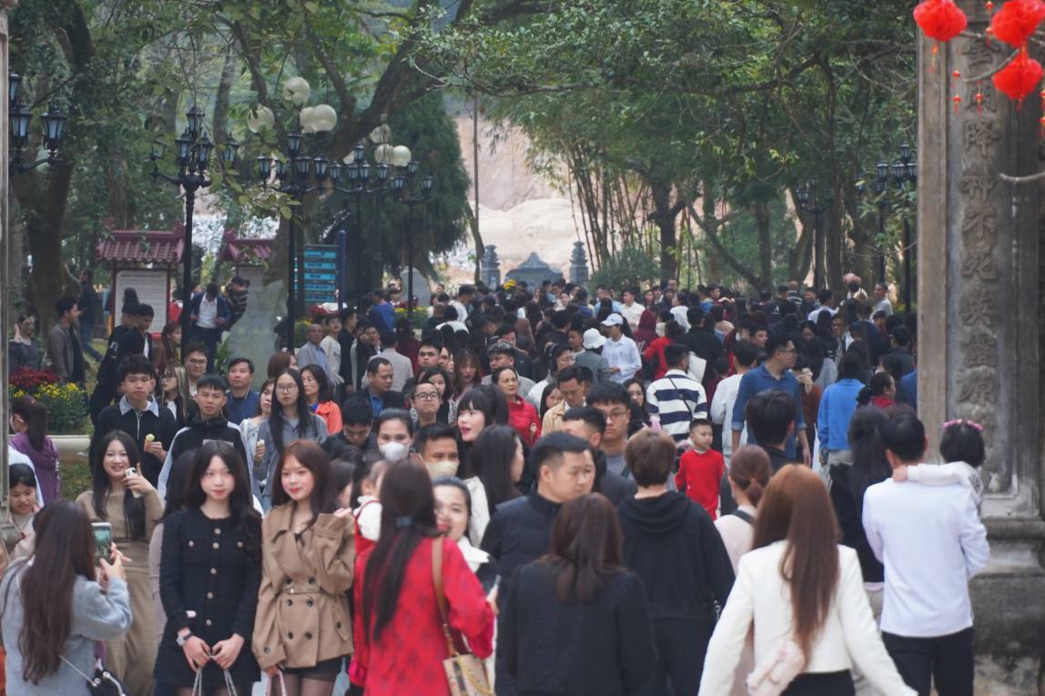 According to reporters' records on the morning of February 19 (ie, the 3rd day of Tet), the number of visitors this year increased compared to normal days. The relic site management board has arranged forces to guide and divert traffic, reminding people to practice a civilized lifestyle in places of worship. Service stalls around the area are also neatly arranged, limiting the situation of touting and raising prices.