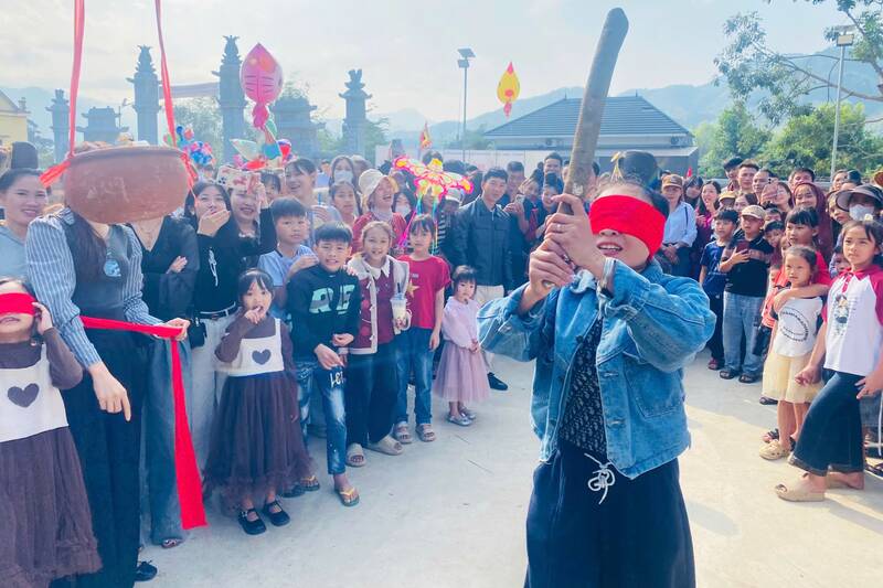 The festival atmosphere became more exciting with folk games such as tug-of-war, con throwing, stick pushing, blindfolded pot smashing, attracting a large number of people to participate.