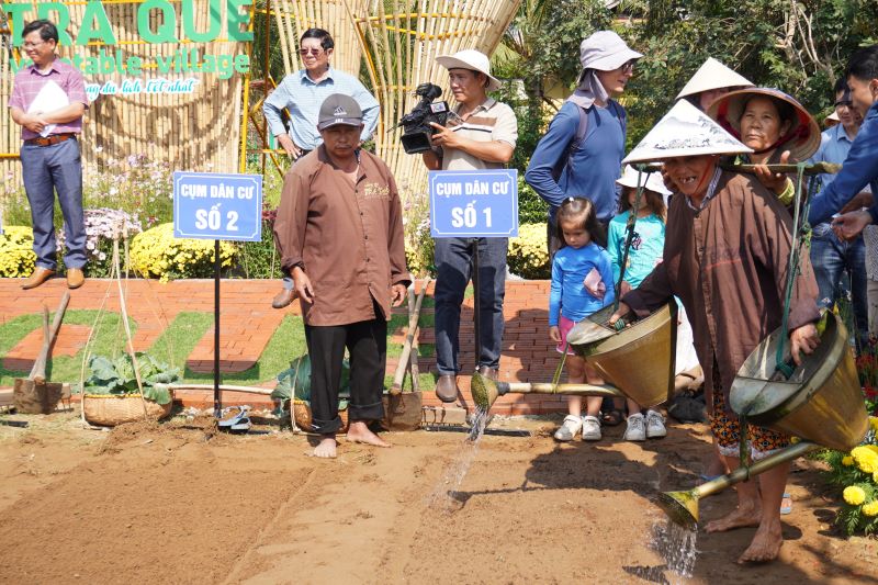 Besides the solemn ceremony part, the festival part is vibrant with many unique cultural and folk activities such as Bai Choi, lion - dragon dance performances, soil digging and cabbage planting contest, culinary contest with dishes associated with Tra Que vegetable growing. These activities not only create a joyful atmosphere, connecting the community but also contribute to introducing traditional agricultural cultural life to tourists.
