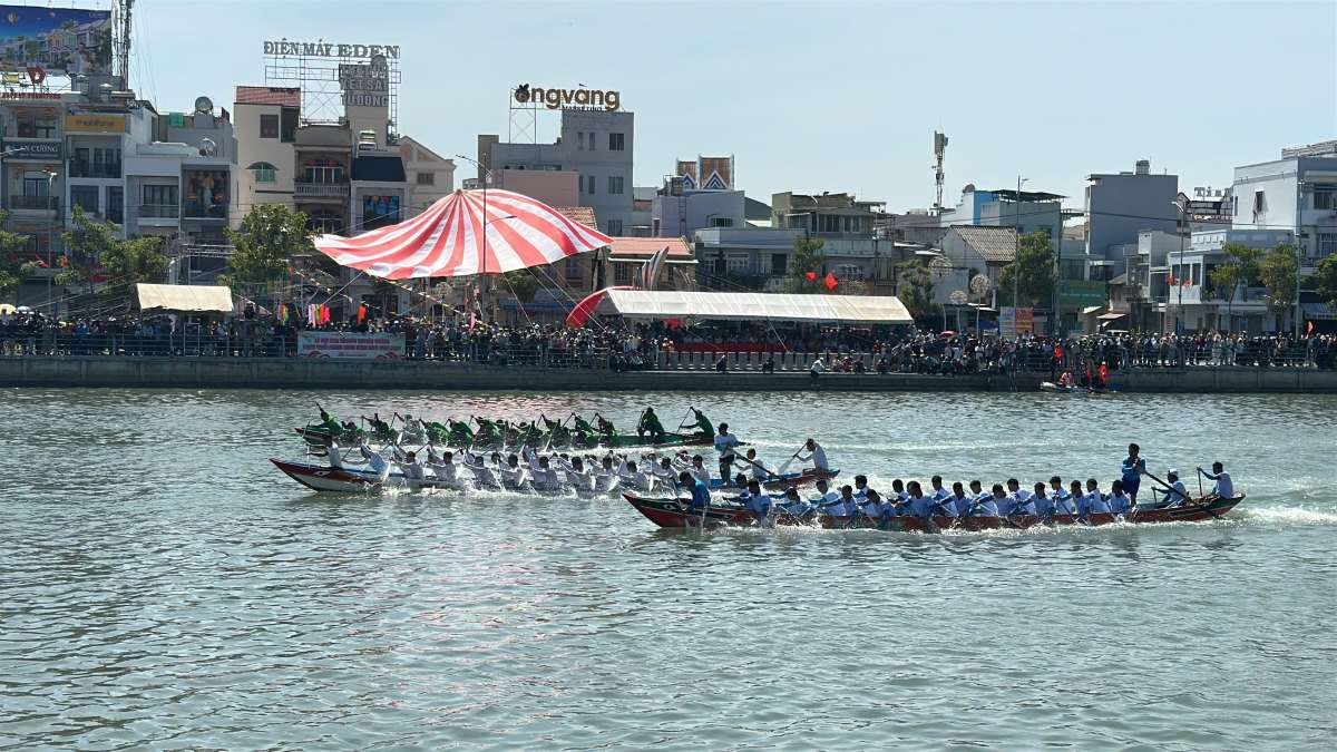On the afternoon of February 18 (ie, the 2nd day of Tet), the atmosphere in the center of Phan Thiet City, formerly Binh Thuan province (now Lam Dong province) became more vibrant than ever when thousands of people and tourists flocked to both sides of the Ca Ty River to watch the traditional boat racing festival that is over 200 years old.