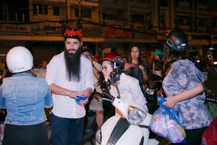 Để thuận tiện cho việc di chuyển khắp thành phố vào ban đêm, Emily Hồng Nhung đã lái xe máy hai bánh chở đạo diễn Kong: Skull Island đi khắp phố phường Sài gòn. Do không quen với phương tiện di chuyển này nên anh thường vịn Hồng Nhung khá chặt để khỏi bị té.