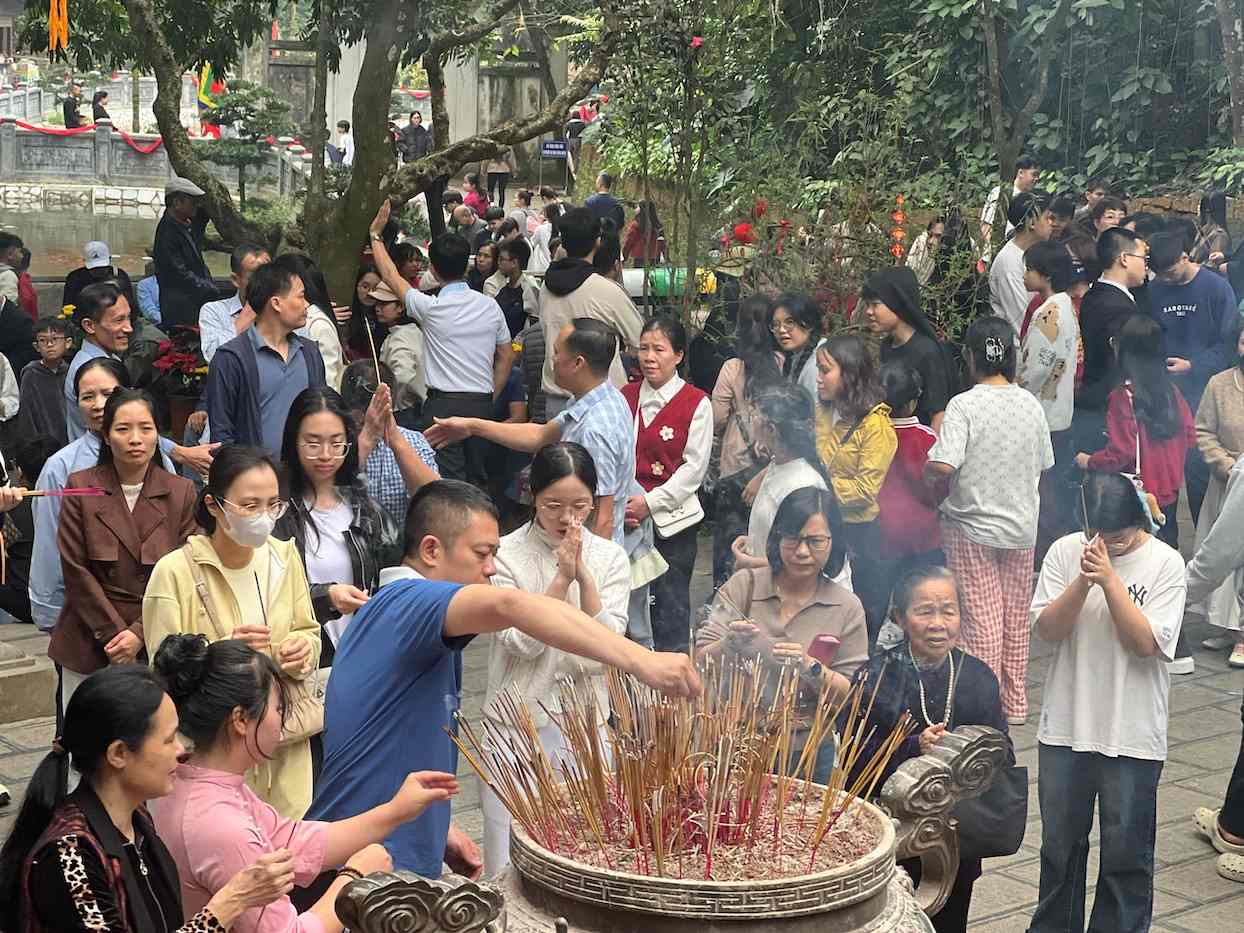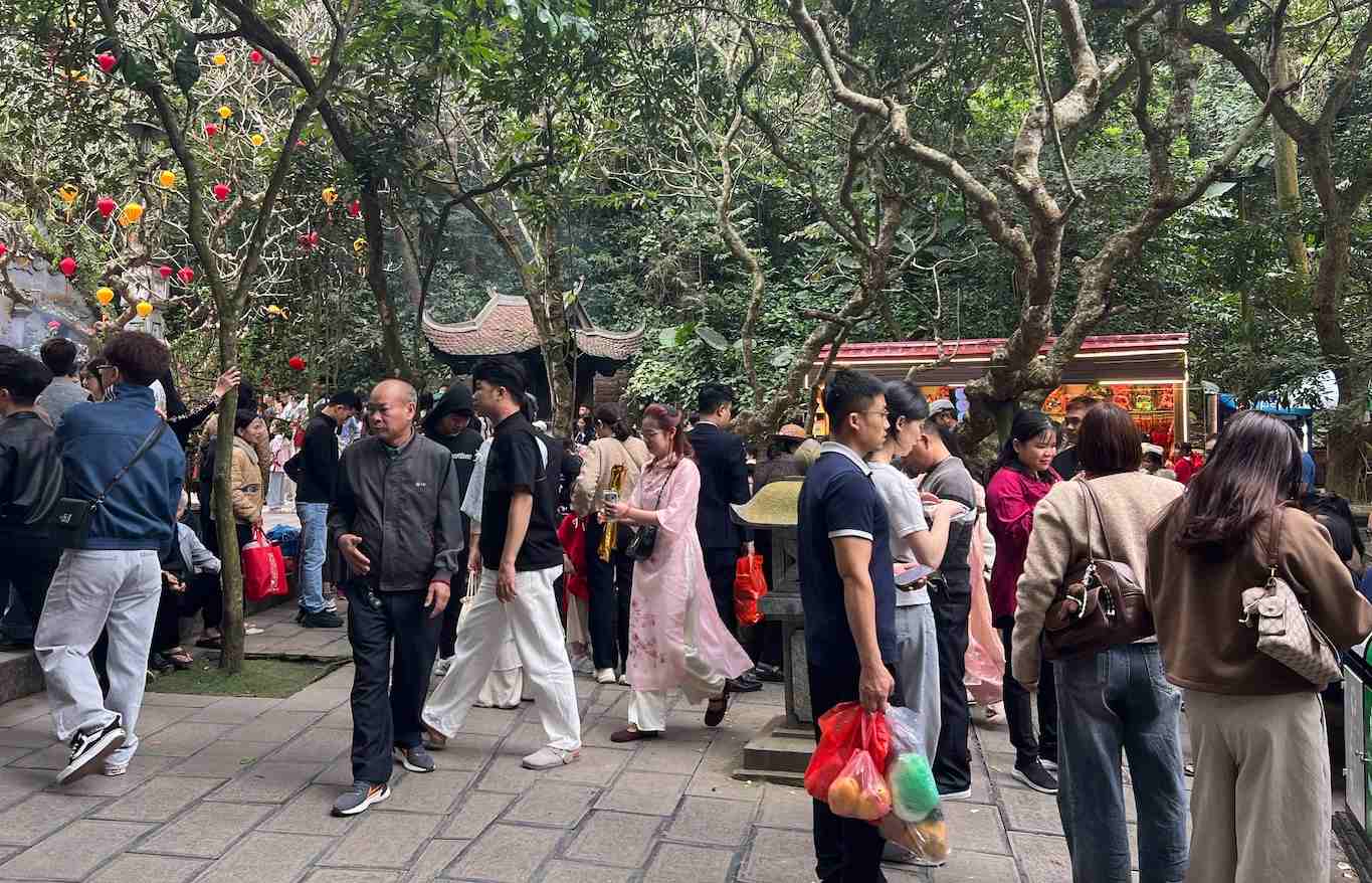 According to Lao Dong's records on February 18, the Gieng Temple area was almost crowded with tourists on the 2nd day of Tet.