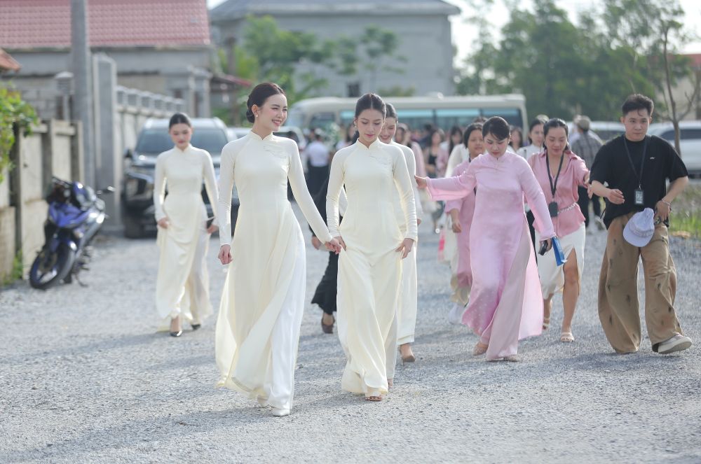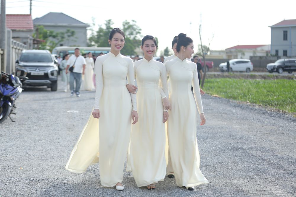 According to the reporter of Lao Dong Newspaper, on the morning of October 16, the talent admission ceremony took place at Miss Do Thi Ha's family's house (Dong Thanh commune, Thanh Hoa). The ceremony was held solemnly and cozy, with the participation of relatives, friends and many beauties in the entertainment industry.
