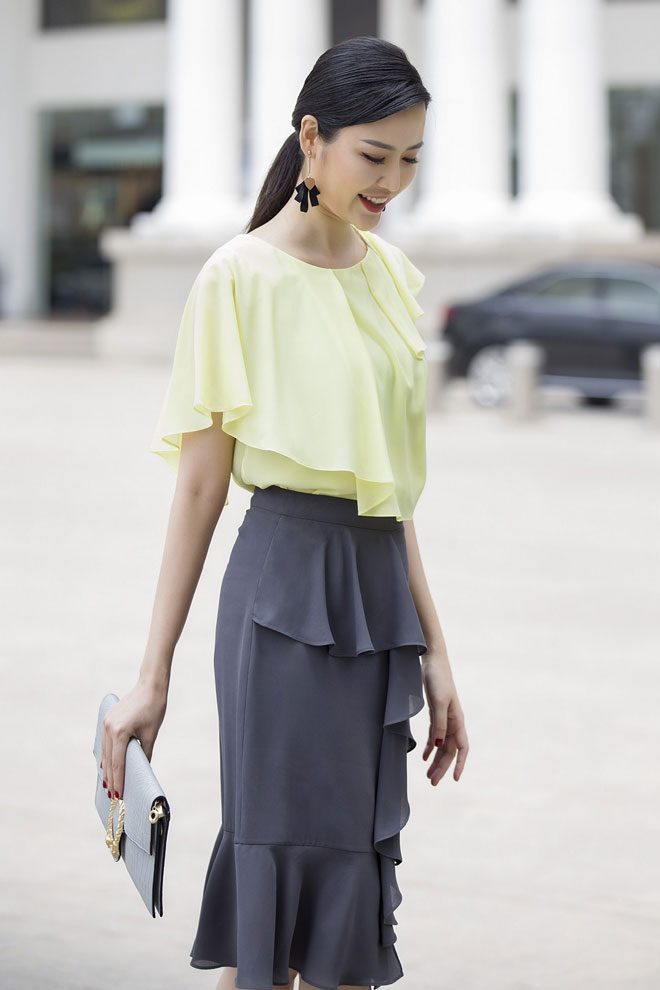 | Đảm nhận công việc MC trên truyền hình, xuất hiện hàng ngày trên màn ảnh nhỏ, hoa hậu phải đầu tư rất nhiều cho việc ăn mặc. |