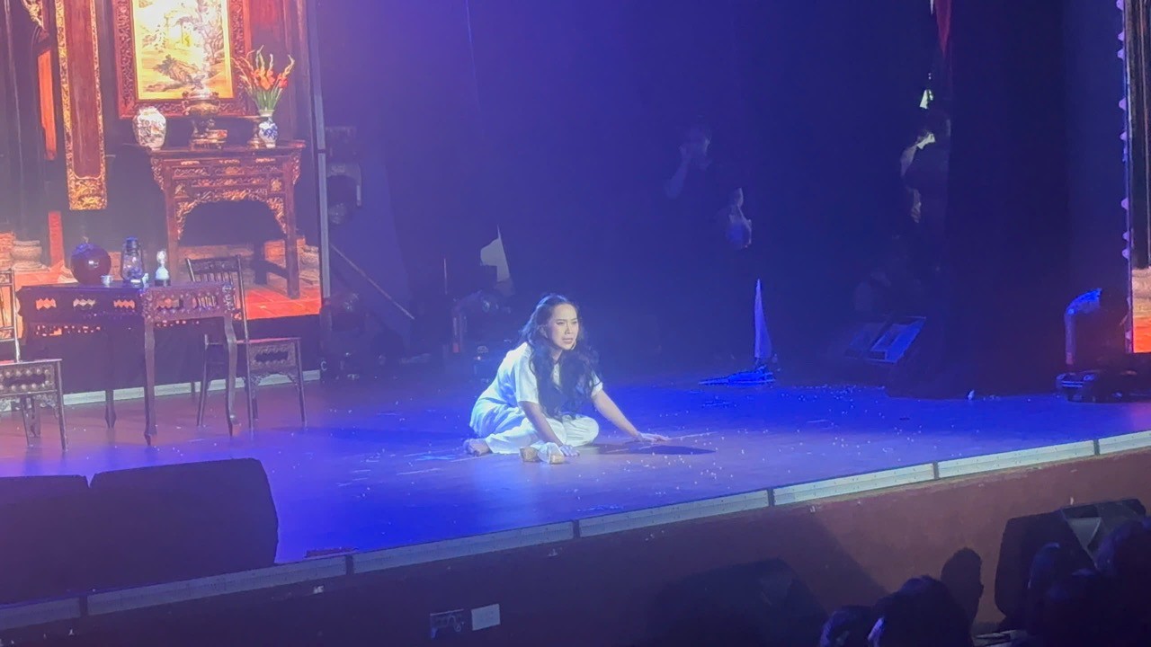 In this play, Hong Phuong plays Aunt Hai - a woman without children, yearning for her husband's love. This is why she unintentionally causes upheavals for her family. In the climaxes, Hong Phuong becomes crazy, her acting moves the audience.