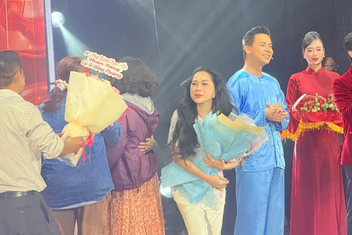On doi - On nguoi" is considered a notable milestone in Hong Phuong's artistic journey. The program received great support from Vu Linh fans and Hong Phuong's family.