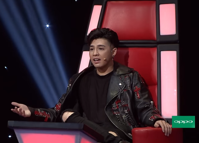 | Noo Phước Thịnh trên ghế HLV Giọng hát Việt 2017. Ảnh chụp màn hình. |