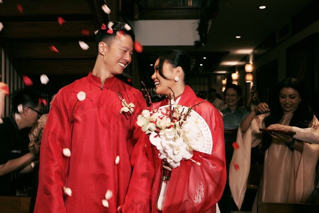 The wedding ceremony of A hau Phuong Nhi and businessman Pham Nhat Minh Hoang - son of billionaire Pham Nhat Vuong - was held at Vinpearl Nha Trang resort.
