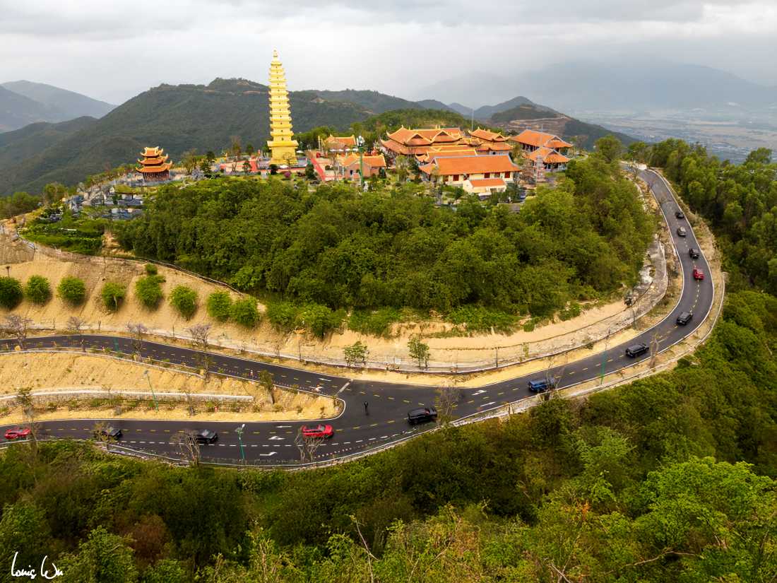 The pagoda is built at an altitude of about 593m above sea level. The highlight of the complex is the 13-story Quang Minh Pagoda, the exterior is gold-plated.