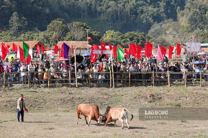 Watching at the bullfighting festival, Mr. Nguyen Van Khanh - a tourist from Dien Bien Phu ward said: "This is the first time I have witnessed a vibrant bullfighting festival with such a strong cultural identity right in the border commune.