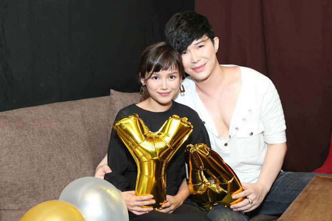 | Nam ca sĩ Đức Tuấn, siêu mẫu Hoàng Yến cũng đến chung vui với bạn đồng nghiệp. |
