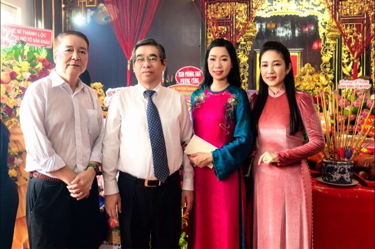 In addition, many veteran artists such as People's Artist Kim Xuan, Meritorious Artist Huu Chau, and actor Tran Bao Son also attended the Ancestor's death anniversary at Thien Dang stage. Actor Luong The Thanh said he always values this day, because it is an occasion for many colleagues to gather, show gratitude for his acting career and the audience.