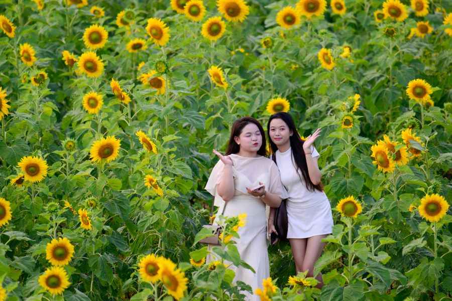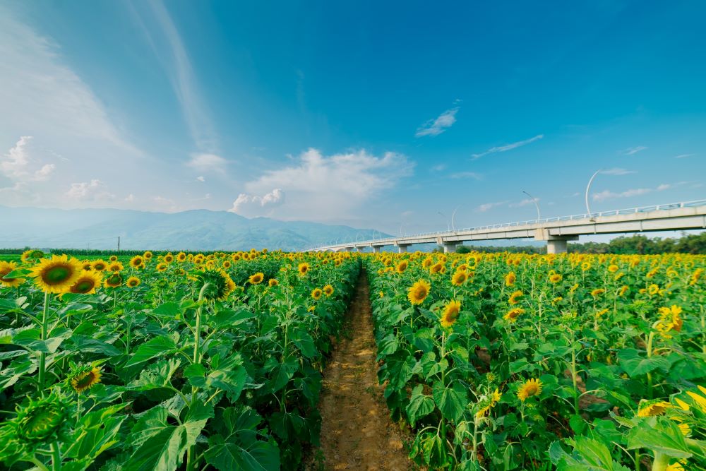 In addition to the landscape value for tourism, after the flowers wither, the stems and leaves of the sunflower can be composted as animal feed, and sunflower seeds can be used as seeds or pressed with vegetable oil, bringing economic value.