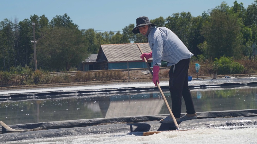 In reality, although production has been improved from making traditional earth salt to spreading tarpaulins to increase productivity and the quality of salt is whiter and cleaner, unstable income has caused the confidence in the profession of young people to decline.