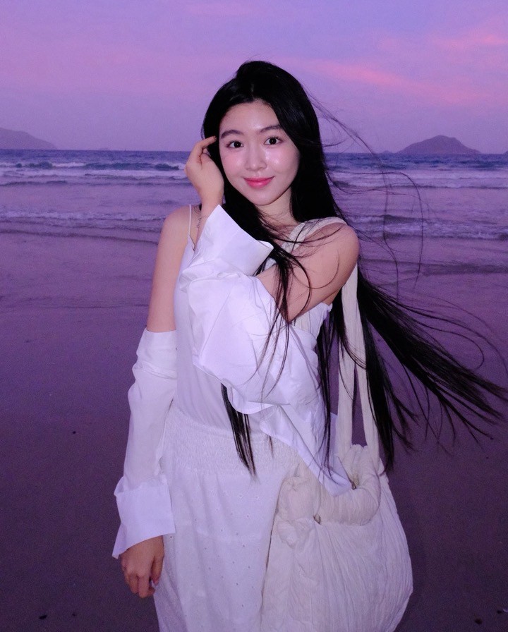 At events with her father, she often chooses elegant outfits, highlighting her balanced figure and confident demeanor. Meanwhile, everyday moments show a youthful, close image, true to her student age.