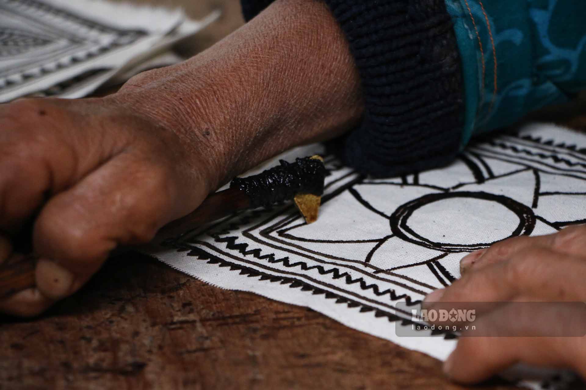 Returning to the craft of drawing beeswax on Lanh fabric, artisan Sung Thi Co for decades has still had old pens and bowls of wax, but the strokes are still as if soulful. Each square, circle, diamond, sawtooth, cross drawn on the linen fabric all have meaning.