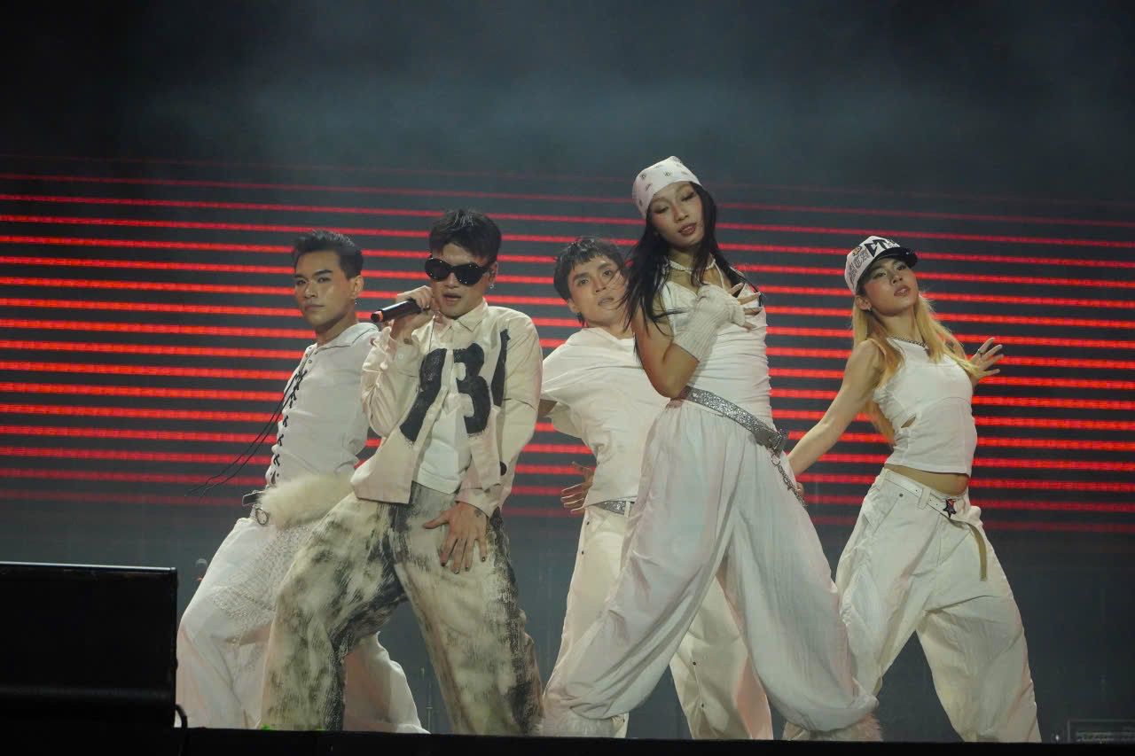 The festival atmosphere really exploded when HIEUTHUHAI appeared on stage. HIEUTHUHAI stirred up the audience with a series of familiar songs such as Sleeping alone, Crocodile tears, Turn on the music or See you under the moonlight. The liberal performance style, youthful energy and direct connection with the audience helped the male singer's performance become one of the notable highlights of the opening night.