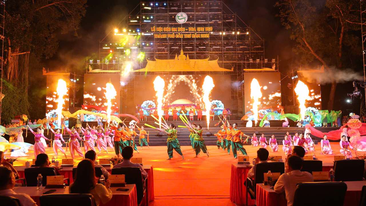 On the evening of November 3, at Bach Dang Square (Phu Loi Ward, Can Tho City), the City Party Committee, People's Council, People's Committee, and Vietnam Fatherland Front Committee of Can Tho City organized the opening ceremony of the Ooc Om Boc - Ghe Ngo Race Festival in 2025, associated with the art program with the theme "brilliance of the Moon River - Lighting up Heritage".