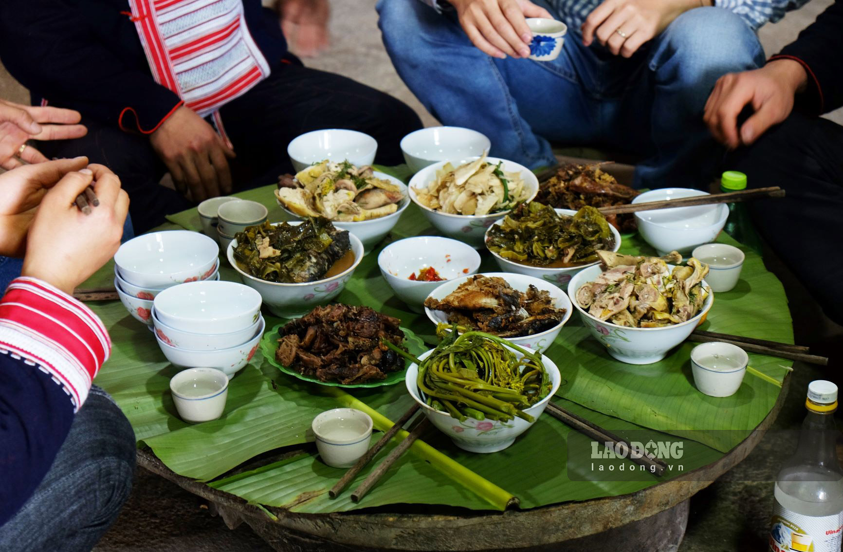 After the worshiping ceremony, the offerings are lowered and processed into Tet meal trays. Relatives and villagers are invited to celebrate with the family. The Red Dao people's Tet not only takes place in one house, but rotates around the village, house after house, creating a joyful atmosphere that lasts throughout the early spring days.
