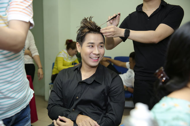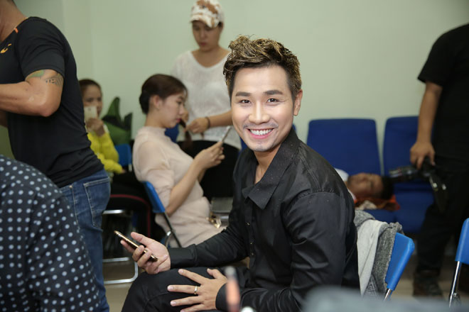 | MC Nguyên Khang đến khá sớm để chuẩn bị thật kỹ lưỡng tiết mục của mình. |