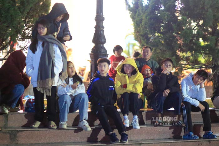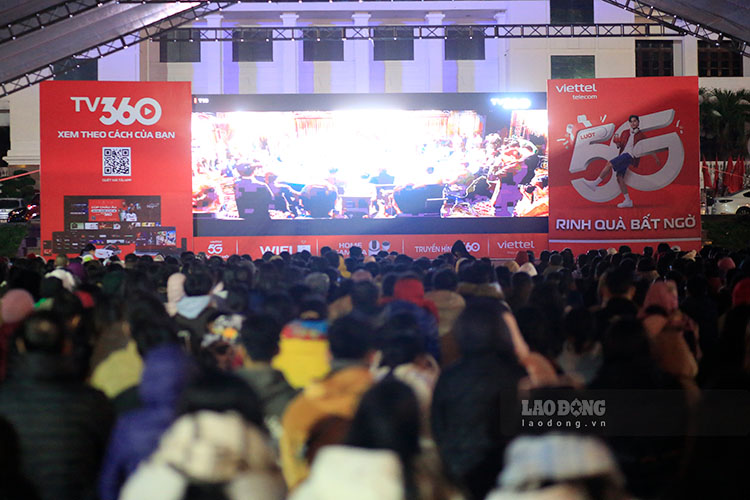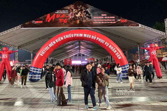 According to the reporter of Lao Dong Newspaper, from 6:30 p.m., although the weather in Dien Bien province these days has turned cold (about 12 degrees Celsius), many people, from the elderly to the young, have equipped warm clothes and sweaters to go to the 7/5 Square area (Dien Bien Phu ward) to watch the screening of the movie Red Rain.