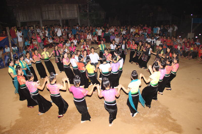 In the middle of the village cultural house yard, the sound of drums and gongs echoed, everyone hand in hand opened the xoe circle.