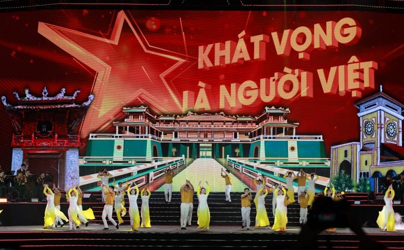 On the evening of August 9, the Central Military Commission - Ministry of National Defense coordinated with the Hanoi Party Committee, Hue City Party Committee, and Ho Chi Minh City Party Committee to organize the political and artistic television program Under the glorious Flag.
