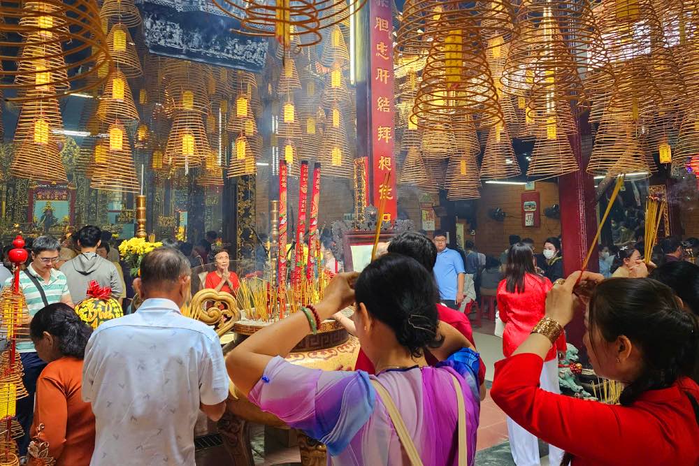 Can Tho people excitedly go to pagodas to pray for peace, hoping for favorable weather