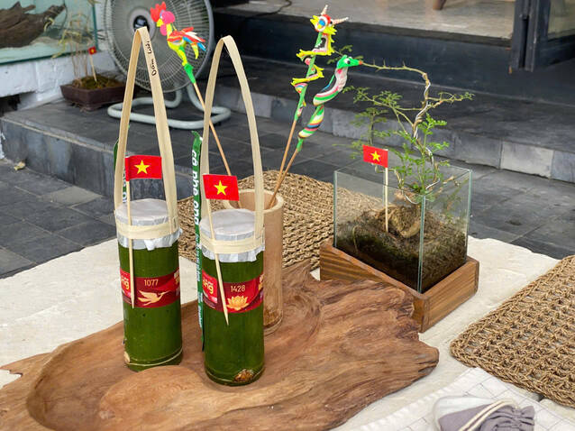 Bamboo coffee shop with red flag with yellow star attracts customers on the occasion of National Day 2.9