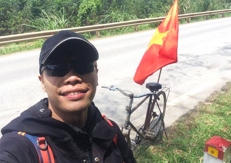 On his grandfather's old mountain bike, Le Nhu Phuc (23 years old, Thanh Hoa) traveled hundreds of kilometers from the Northwest to Hanoi to celebrate National Day on September 2.