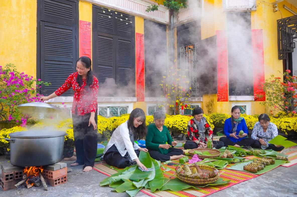 Wrapping banh tet to recreate the old Tet space of the Mekong Delta