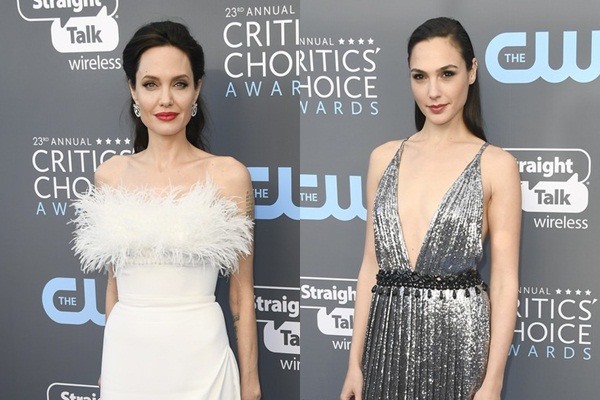 Angelina Jolie và Gal Gadot cùng gây chú ý khi xuất hiện trên thảm xanh lễ trao giải điện ảnh.