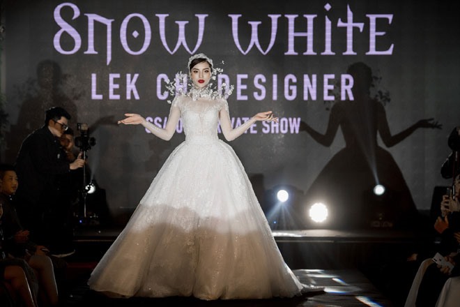 Hoa hậu Việt Nam 2014 - Kỳ Duyên hút mọi ánh nhìn khi xuất hiện vô cùng lộng lẫy trong tạo hình "Nữ hoàng tuyết" khi đảm nhận vai trò vedette tại show diễn áo cưới "Snow White" của nhà thiết kế Lek Chi ở Hà Nội vừa qua.