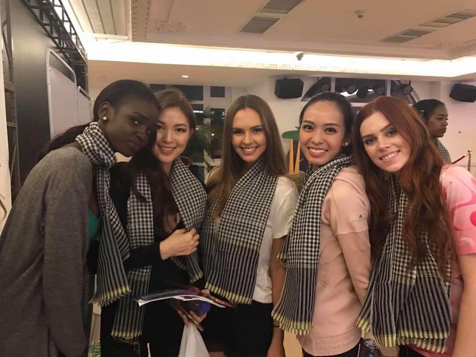 Hoa hậu Đỗ Mỹ Linh mang khăn rằn tặng các thí sinh Miss Word 2017