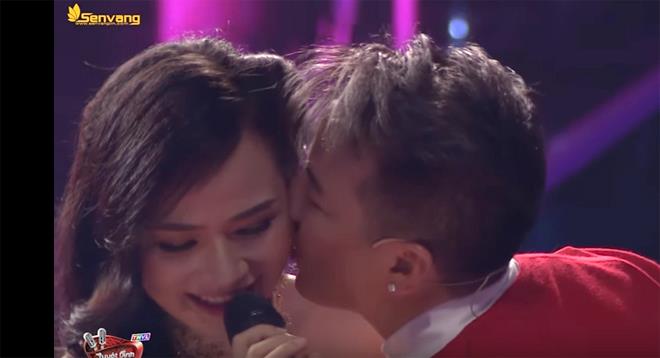 Thí sinh của đội Quang Lê bất ngờ "tỏ tình" với HLV Đàm Vĩnh Hưng bằng một bài hát và được Mr Đàm đáp lại bằng một nụ hôn ngay trên sân khấu Tuyệt đỉnh song ca 2017.