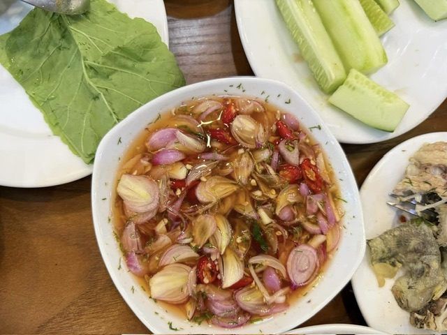 A group of guests eating seafood at a restaurant in Cau Giay, Hanoi were wondering why they had to pay 195,000 VND for 3 bowls of fish sauce for onions.