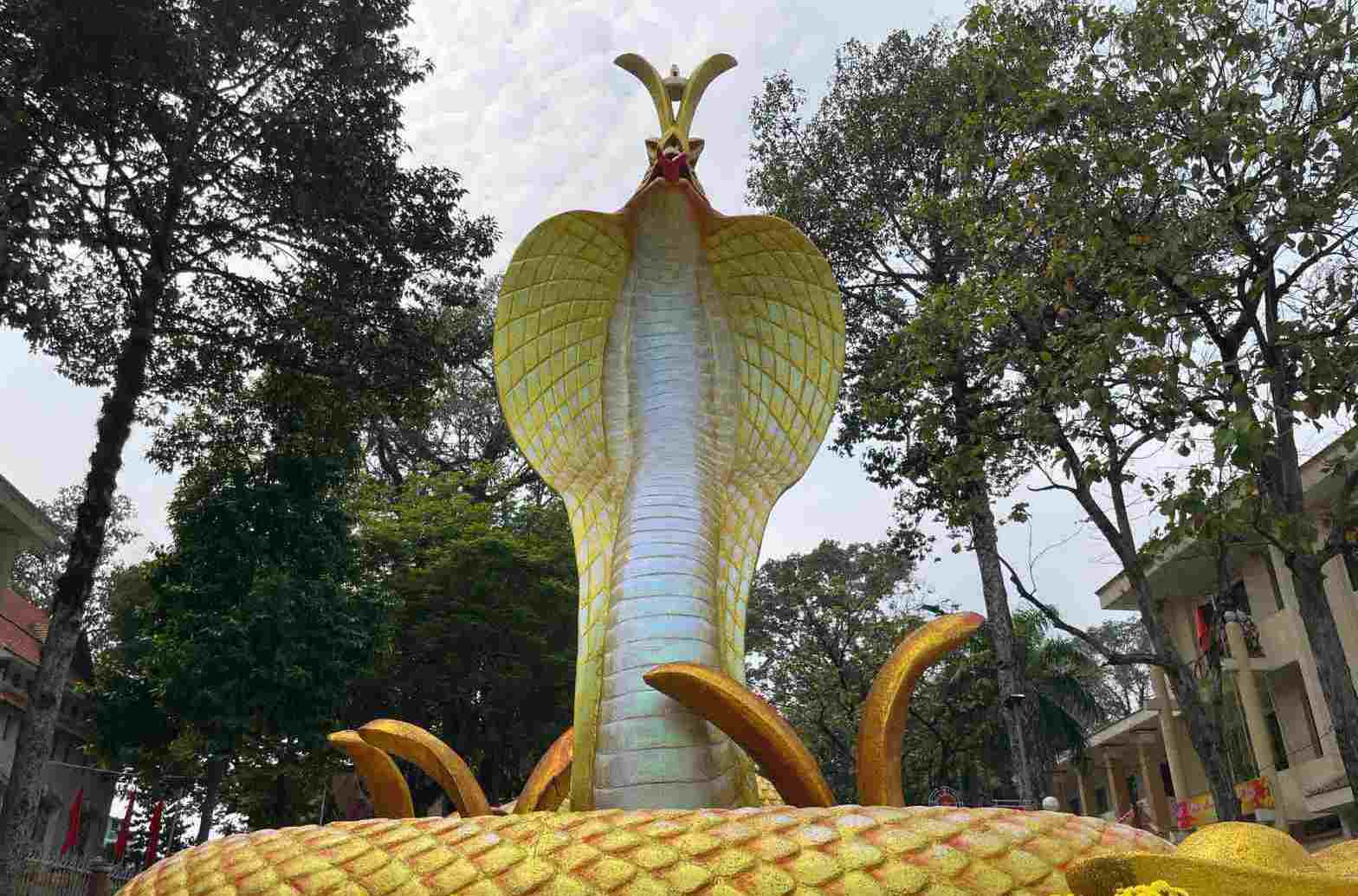 The mascot wears a majestic crown like the snake king in Binh Duong