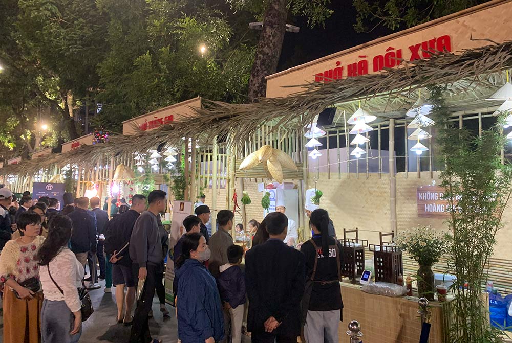 Locals and tourists enjoy experiencing all the nuances of Hanoi Pho at the Hanoi Food Culture Festival 2024, with many lively interactive activities.