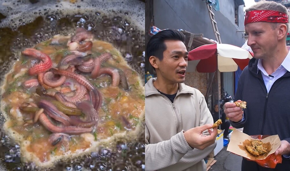 Western tourists are scared when eating shrimp paste and water bugs for the first time in Hanoi