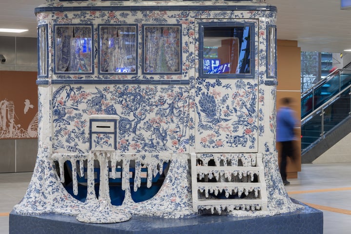 Strange train car made from 15,000 ceramic pieces at Hanoi metro station